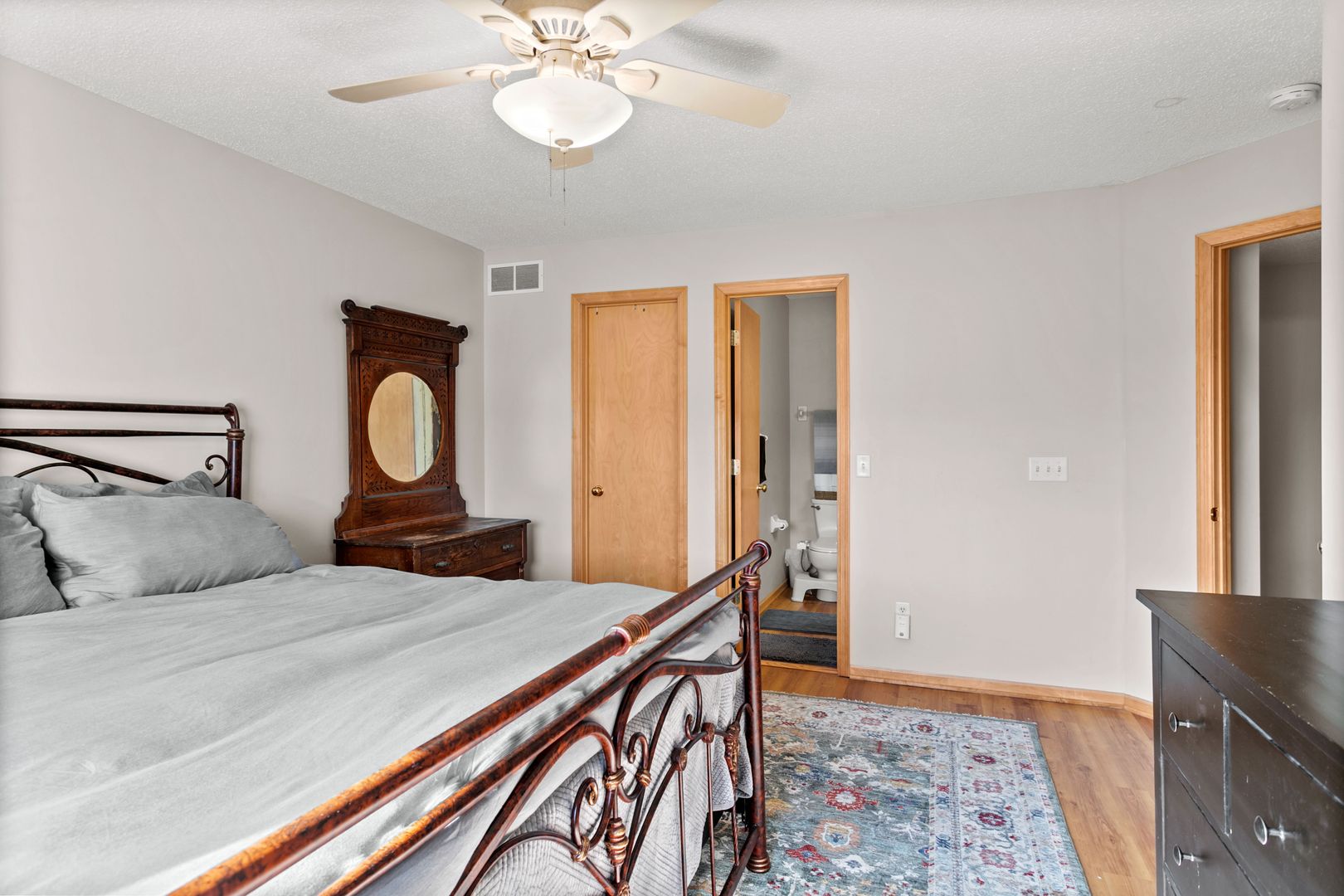 Upstairs you’ll find two comfortable bedrooms, including a spacious primary bedroom with a large walk-in closet and a convenient walk-through connection to the full bathroom. The upper level also includes new LVP flooring and fresh paint for a clean, modern feel.